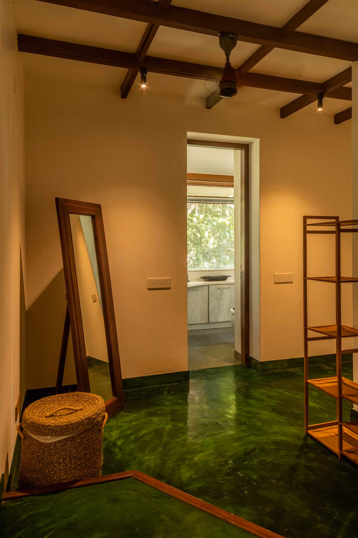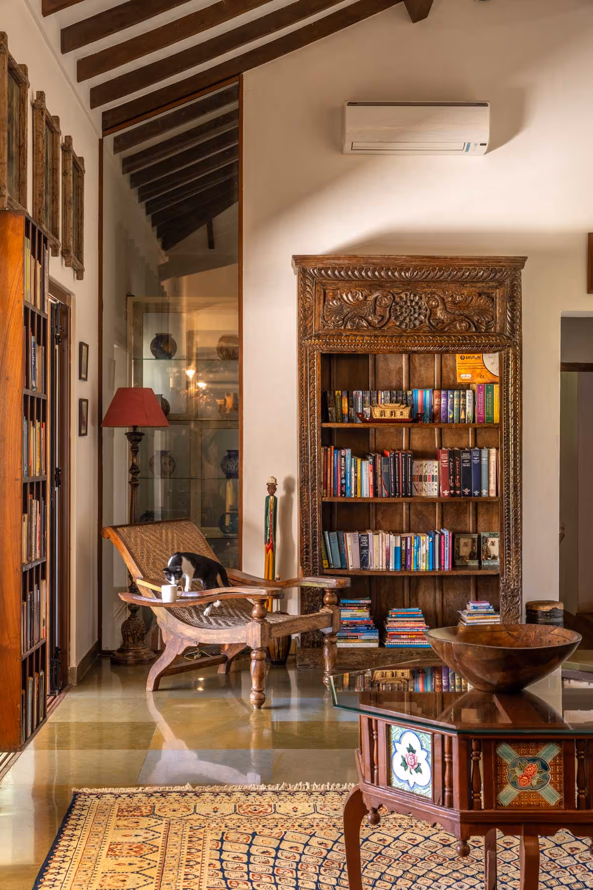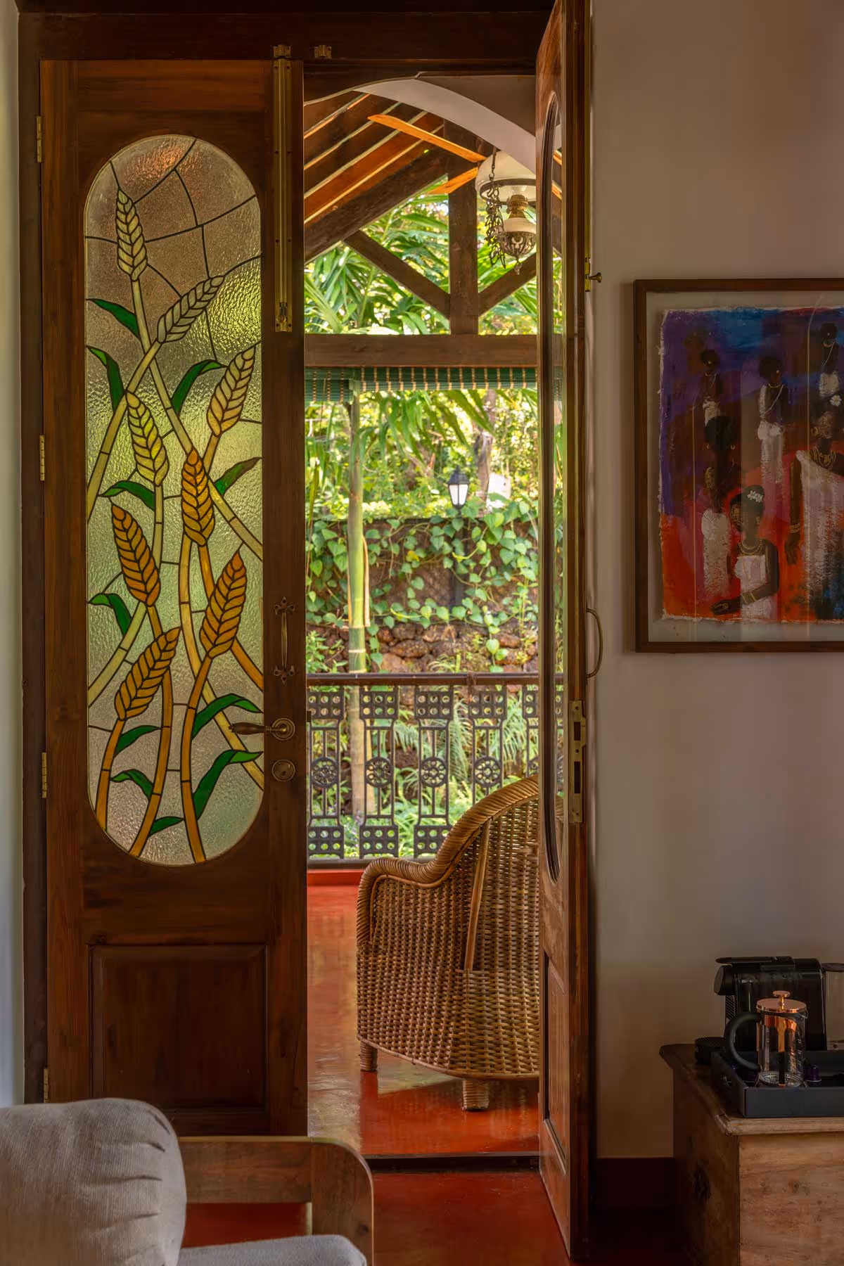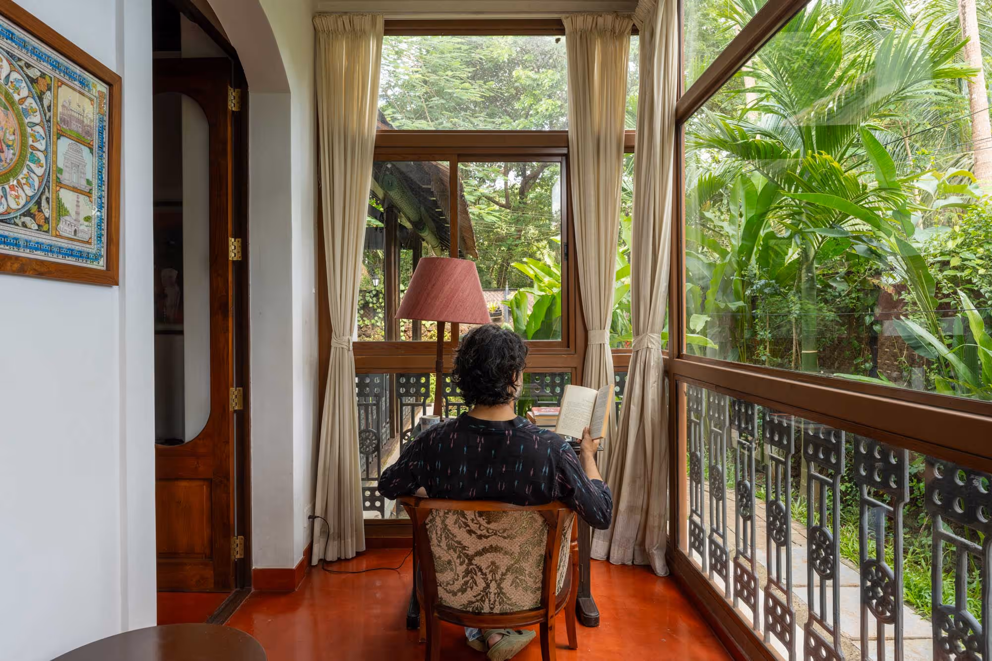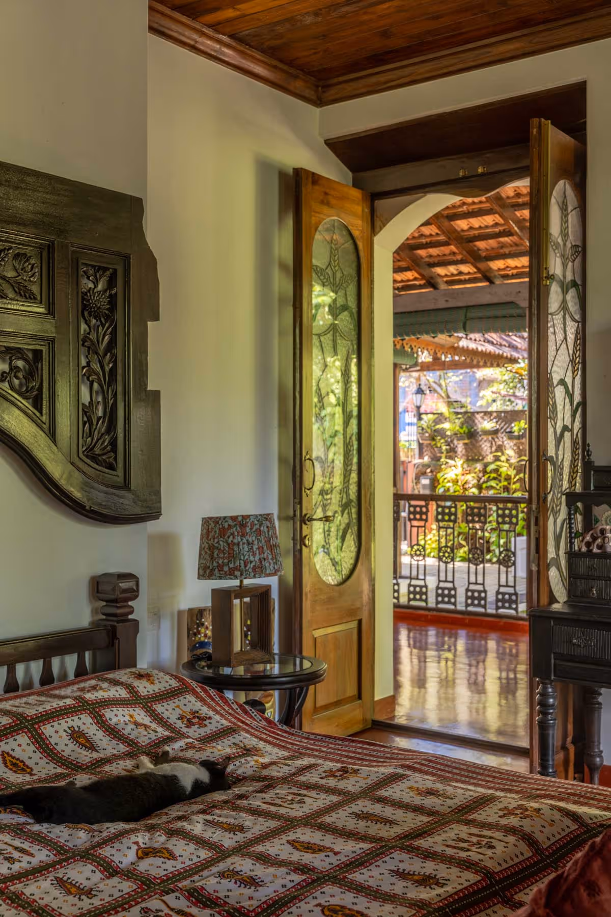 The house feels like a quiet conversation with nature. Its earthy palette of natural materials and soft textures creates a warm, welcoming embrace, where the lines between indoors and outdoors blur effortlessly. In every corner, the design invites the lush surroundings inside, letting nature become part of the story. Each bedroom carries its own tale, brought to life through distinct colors and handpicked antiques. Vintage furniture whispers of timeless elegance, while repurposed heritage elements, like old pillars, ground the space in history. Echoes of Goan-Portuguese charm are woven throughout, where tradition and modernity come together in perfect harmony.