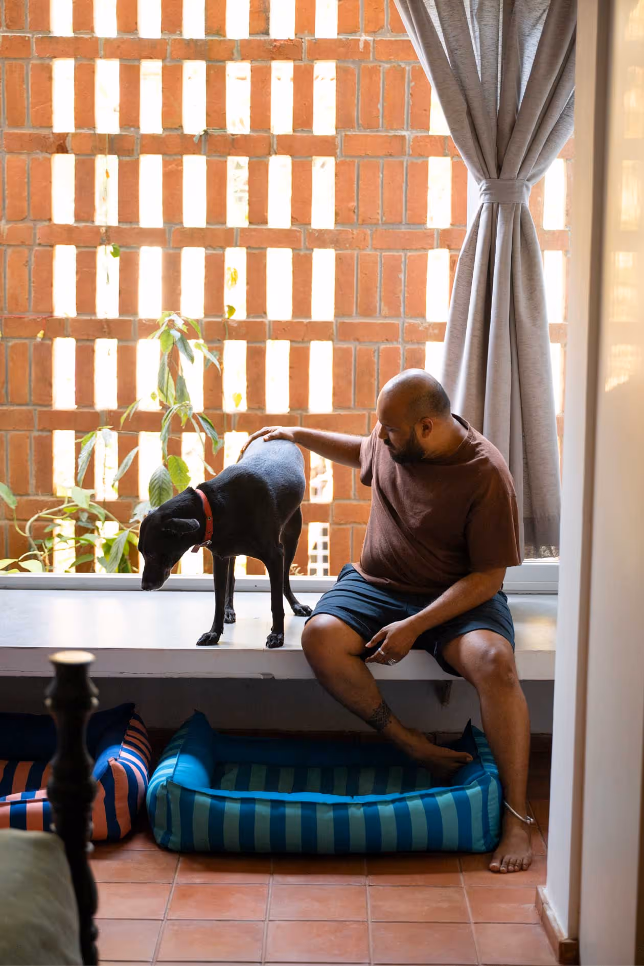 At its centre is Moshi, their dog, their constant. A raised perch allows her to observe the home like its quiet guardian, while open, uninterrupted spaces invite movement, play, and pause.