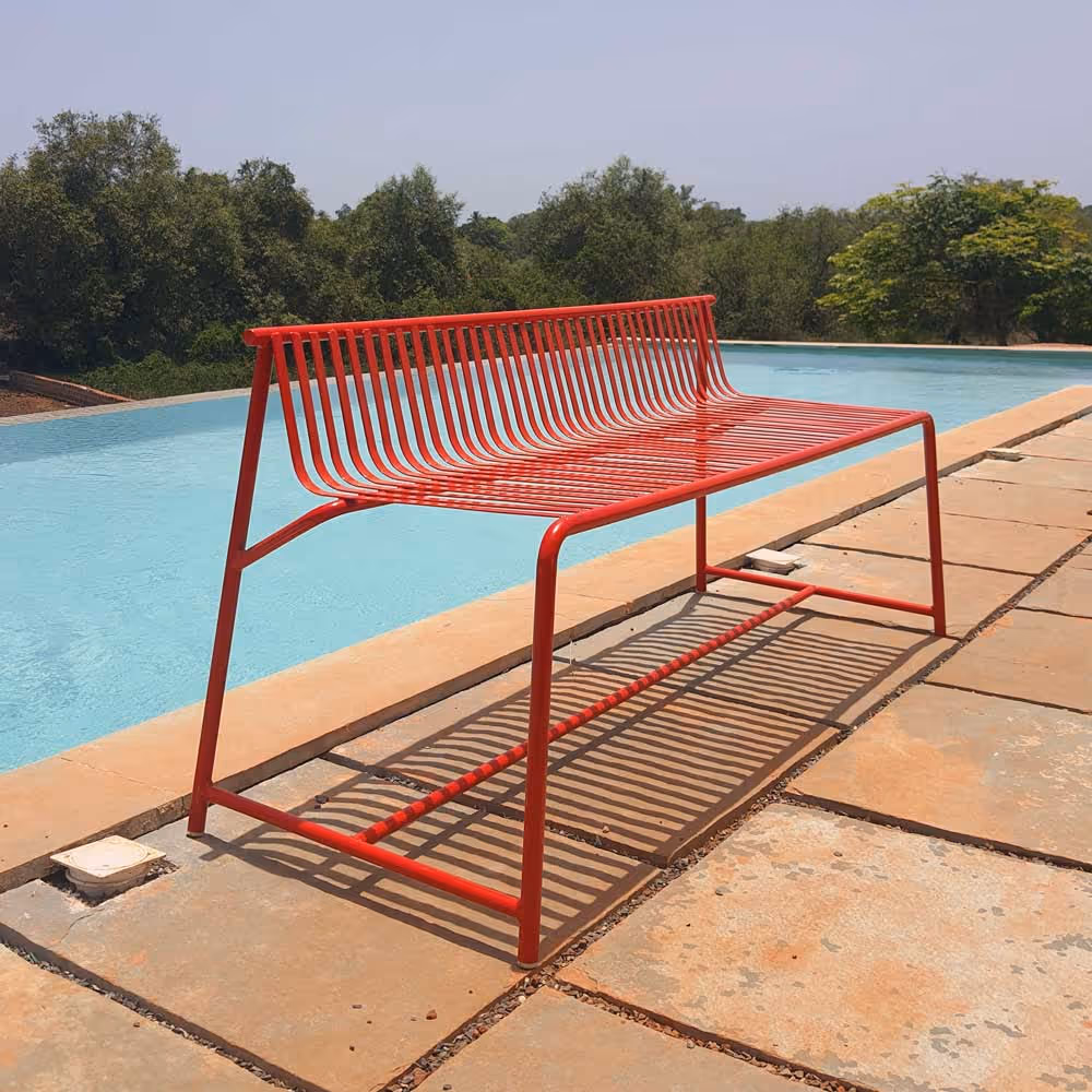 This outdoor furniture set, designed for Shirsha, features sleek, minimal metal designs with vibrant colors. The clean lines and bold hues add a modern, lively touch. Lightweight yet sturdy, it’s easy to move and ideal for relaxing or entertaining. Simple, stylish, and built to last.